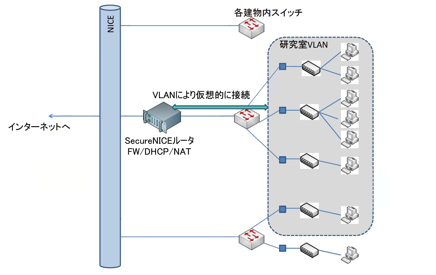 Secure NICEは,安全かつ利便性の高い研究室(等)専用ネットワークです。